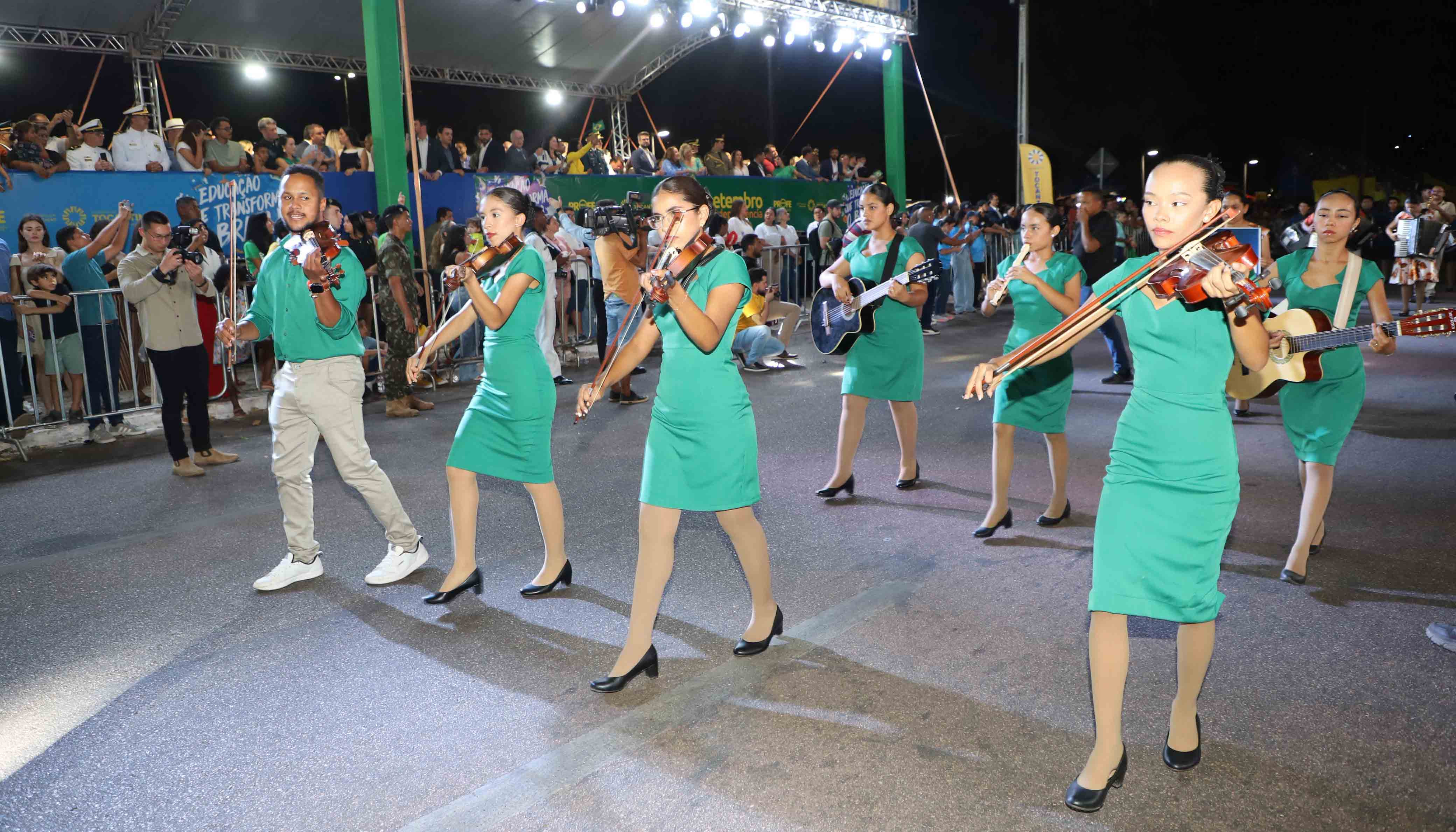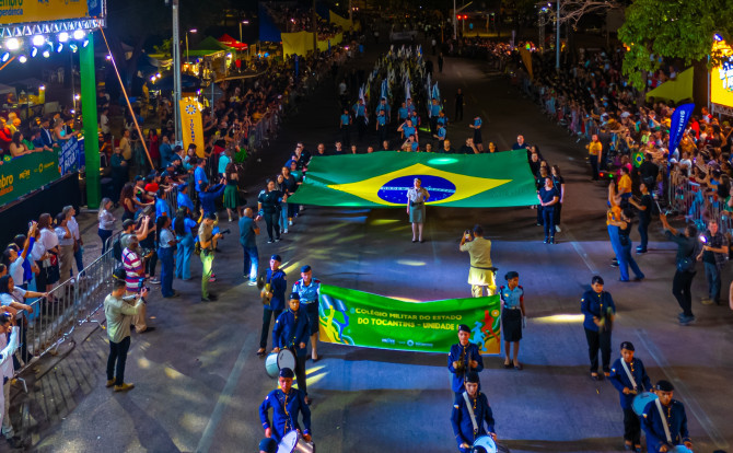 Com o tema Educação que transforma o Brasil, as escolas estaduais apresentaram no desfile os oito eixos do Programa de Fortalecimento da Educação (Profe). As fanfarras e os pelotões de oito unidades escolares destacaram ações do Governo do Tocantins para a educação, como inclusão, aprendizagem, educação tecnológica e inovadora, desporto e cultura, formação e valorização dos profissionais da educação, melhoria da infraestrutura das escolas, além da implantação do Profe nos municípios.