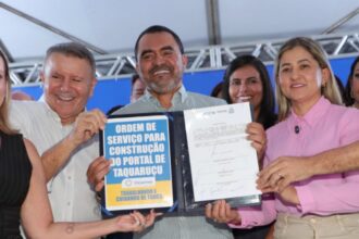 Wanderlei Barbosa assina ordem de serviço para construção do portal de Taquaruçu e pavimentação da via de acesso ao distrito